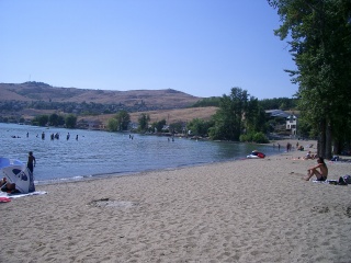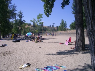 そして アクティビティーへ。12:05にバスストップへ集合し ビーチへ。男共は 即 服を脱いで 履いていたトランクス(海水パンツ)になって 湖へダイブ。ここの湖は それ程冷たくは無く とても気持ちよかった。泳いだり バレーボールなどをして遊ぶ。