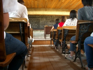 昔の授業を体験しました。この時代のノートは、石盤で出来ており、ペンは、鉄の手に合うサイズのペンでした。