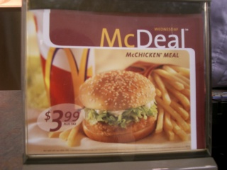 夕食がマクドナルドになるとは思っていなかった。McCHICKEN MEALのコンボを頼みました。RED CHIKIN EVMが$0.71SUPERSIZE FRYが$2.19LARGE、DIETが$1.68で税金が$0.32で 合計$4.90でした。そして、家に帰った。就寝1時。