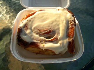 今朝は、必ずAM7:00に起きようと念を聞かせながら、寝た。さすが7時15分前に目が覚めた。今日は、余裕を持って、カフェショップへ行けた。Cinnamon Buns($2.25)で、飲み物は、cappuccino($2.15)税を合わせて約$5.00でした。