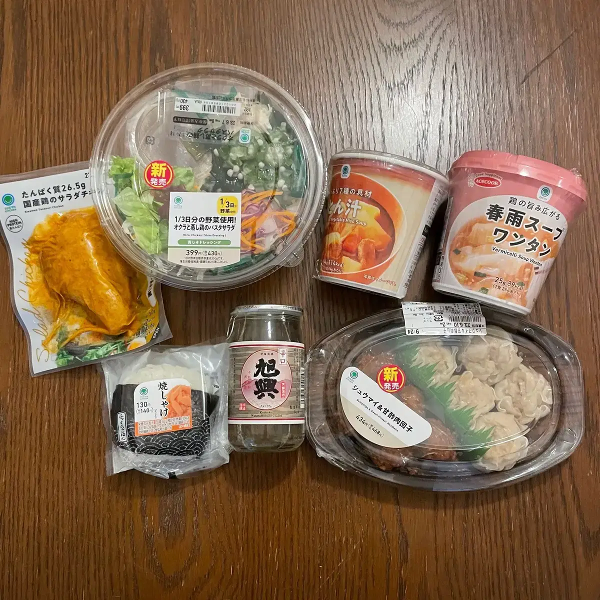 栃木の地酒「旭興」と夕食をコンビニで買って帰宅