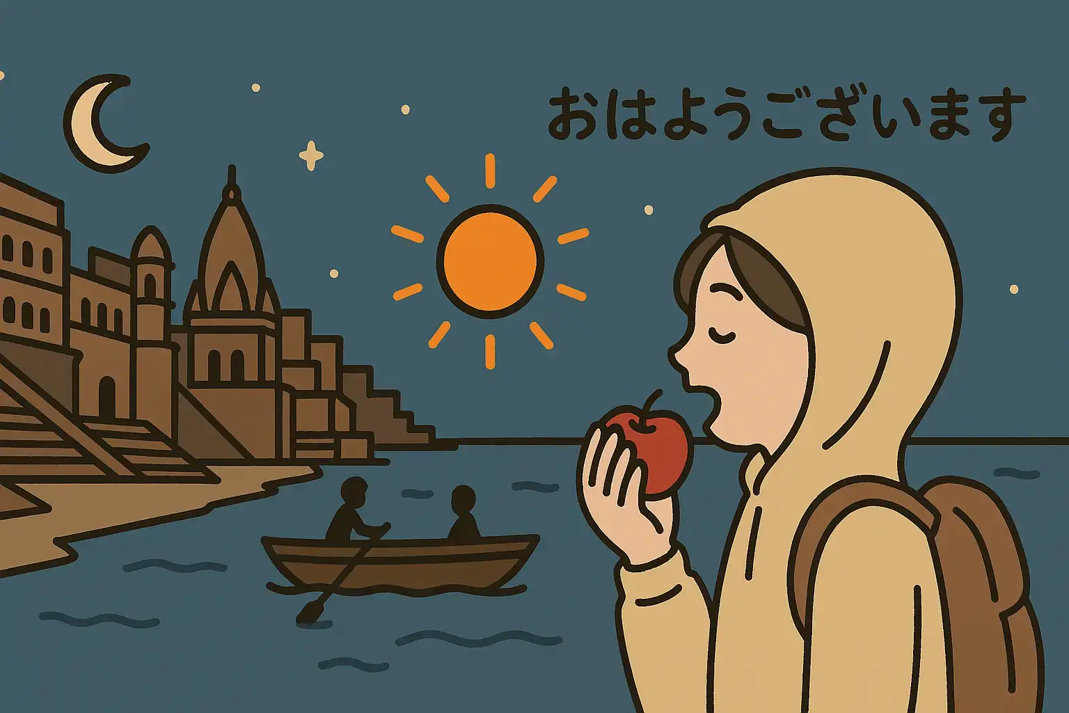 「バラナシの朝って、こんなに静かなんやな…」と妙に感動。