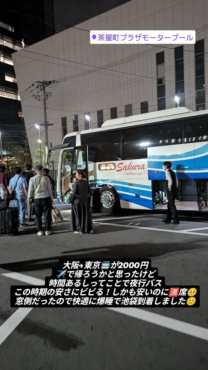 円安や物価高が叫ばれる昨今、この価格で大阪から東京(池袋サンシャインバスターミナル)まで帰れるのは、まさに旅の「バグ」レベルの恩恵です😂🙌