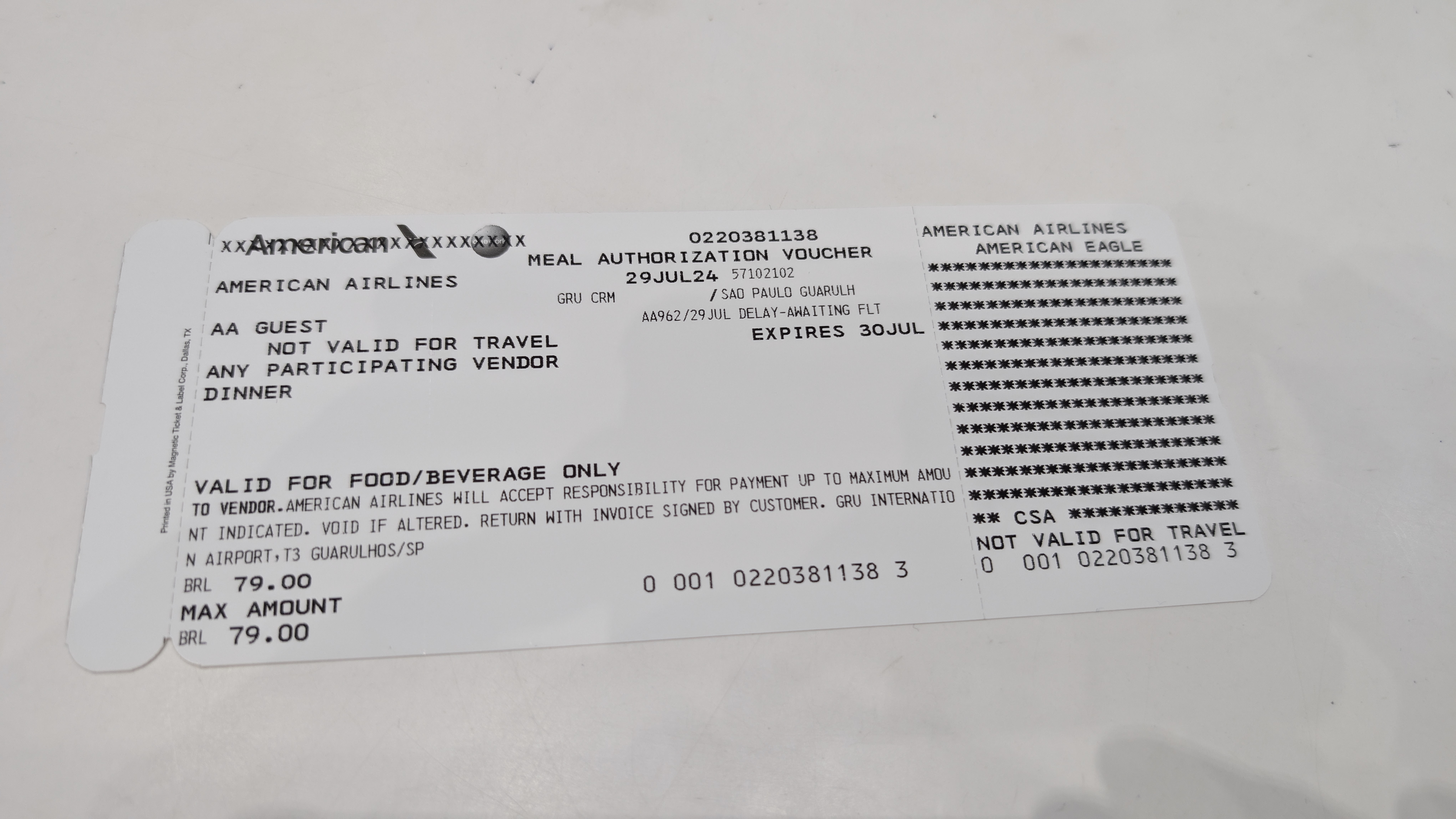 79レアル(約1750円相当)のお食事券をプレゼントされました🎉