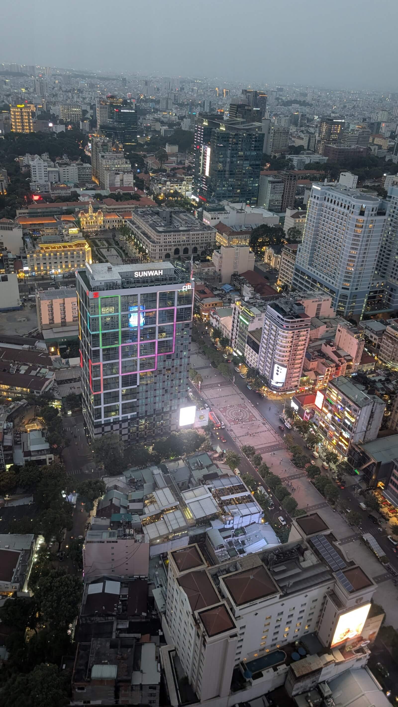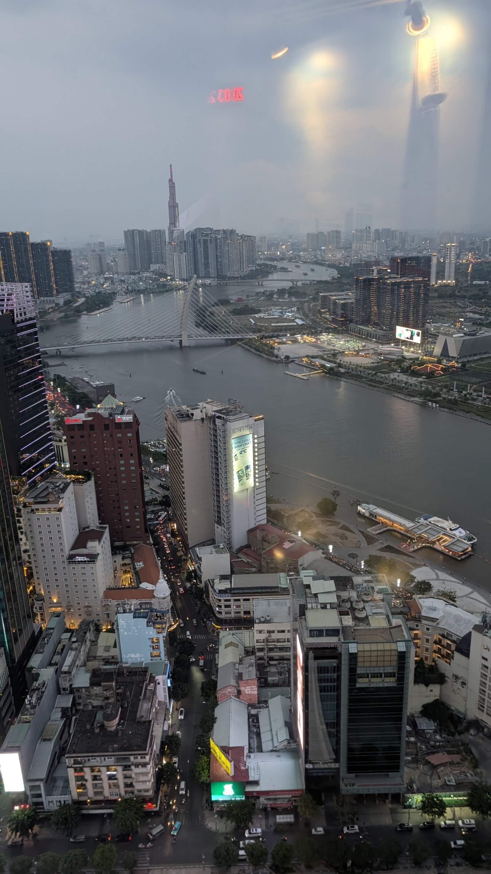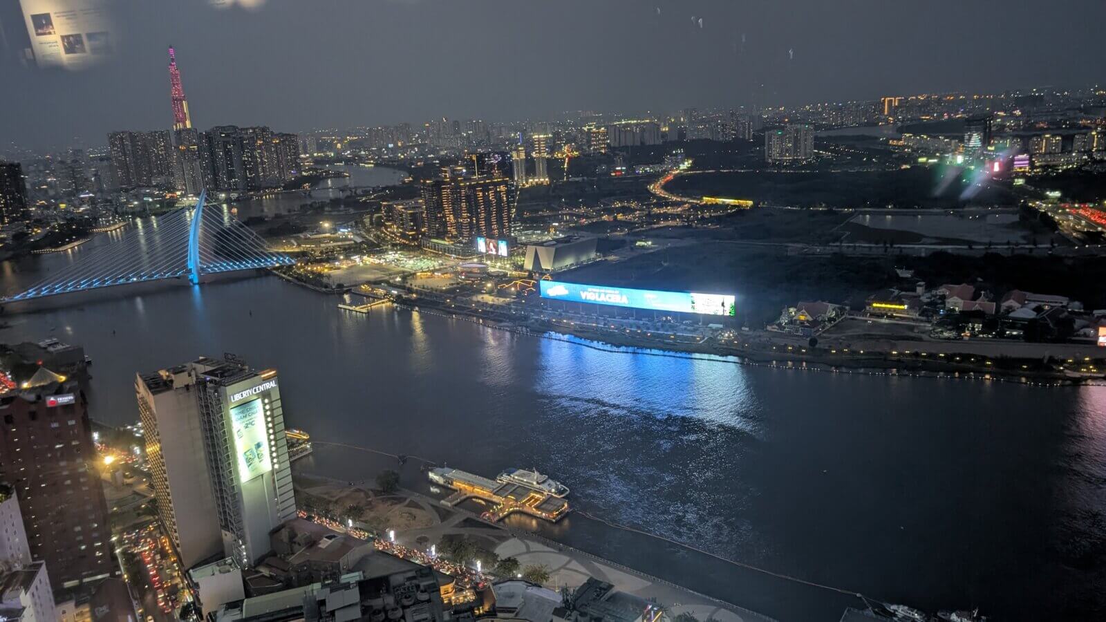 まだ空は明るくて、街中のビル群や交差点、サイゴン川まではっきり見える。