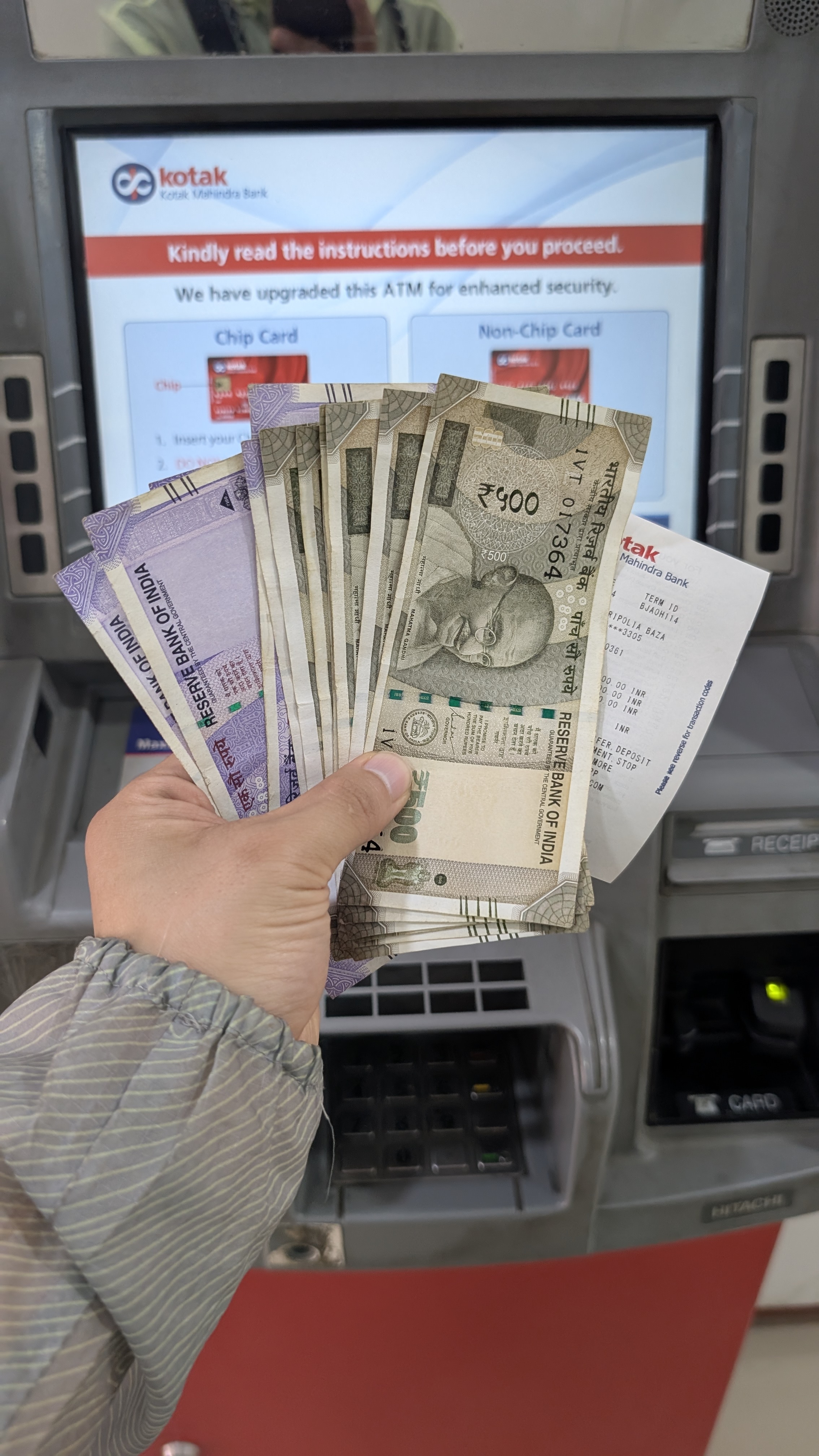 14時15分、現金が少なくなってきたので Wiseカード を使って ₹5000 を引き出し💰