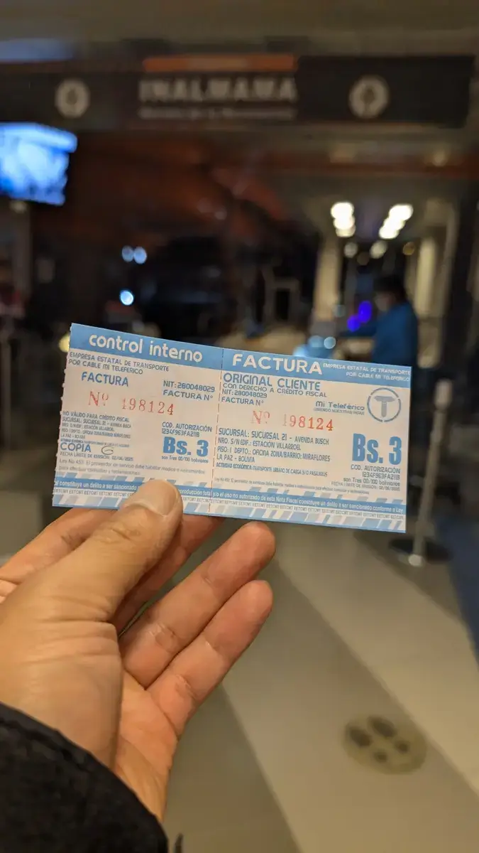 | ロープウェイ乗車 | 144円 | 🚡🌃(6ボリビアーノ) |