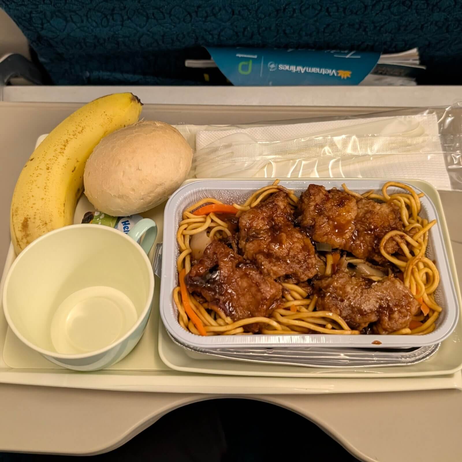 ちょうど機内食が配られてきた🍱
