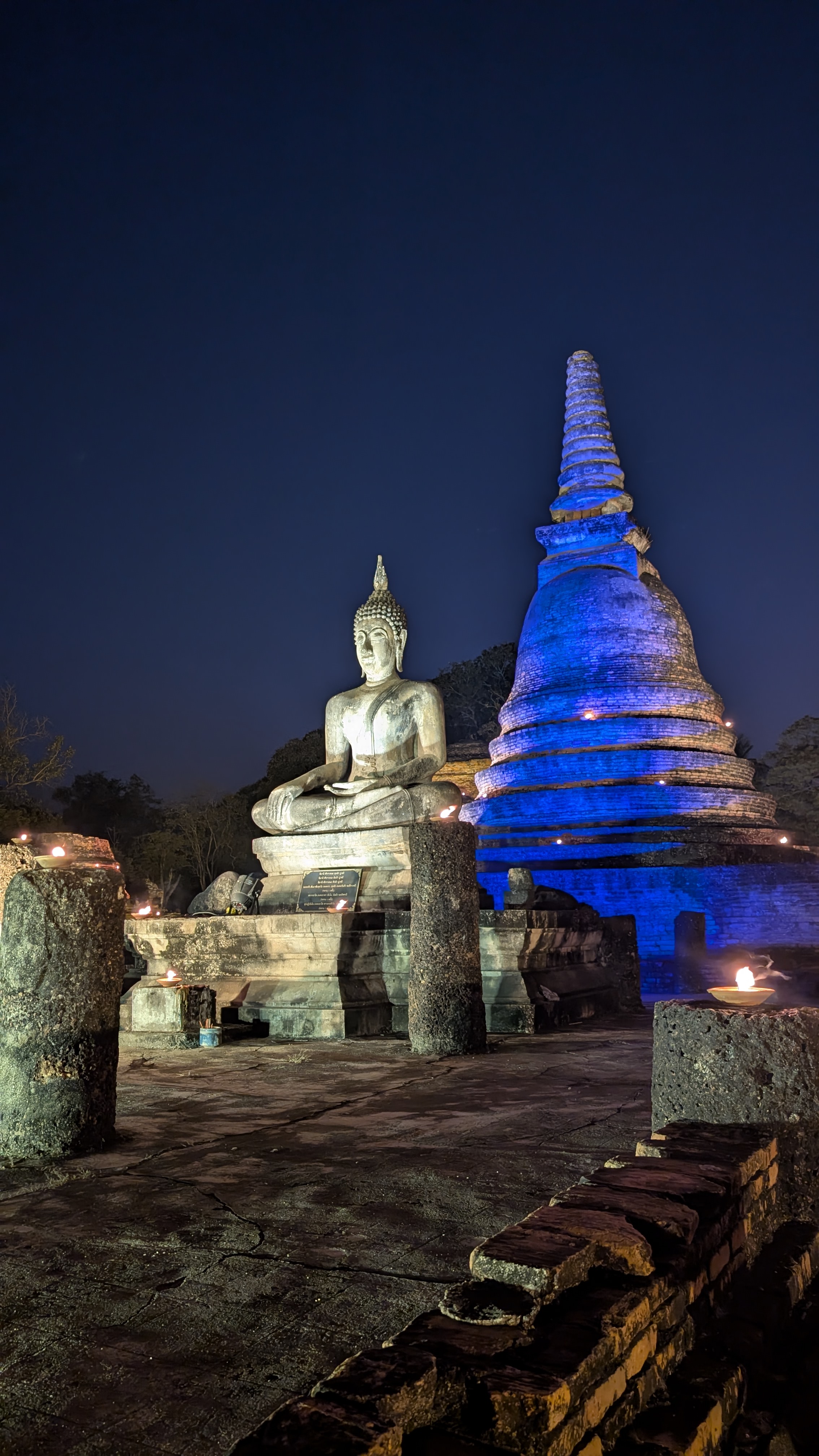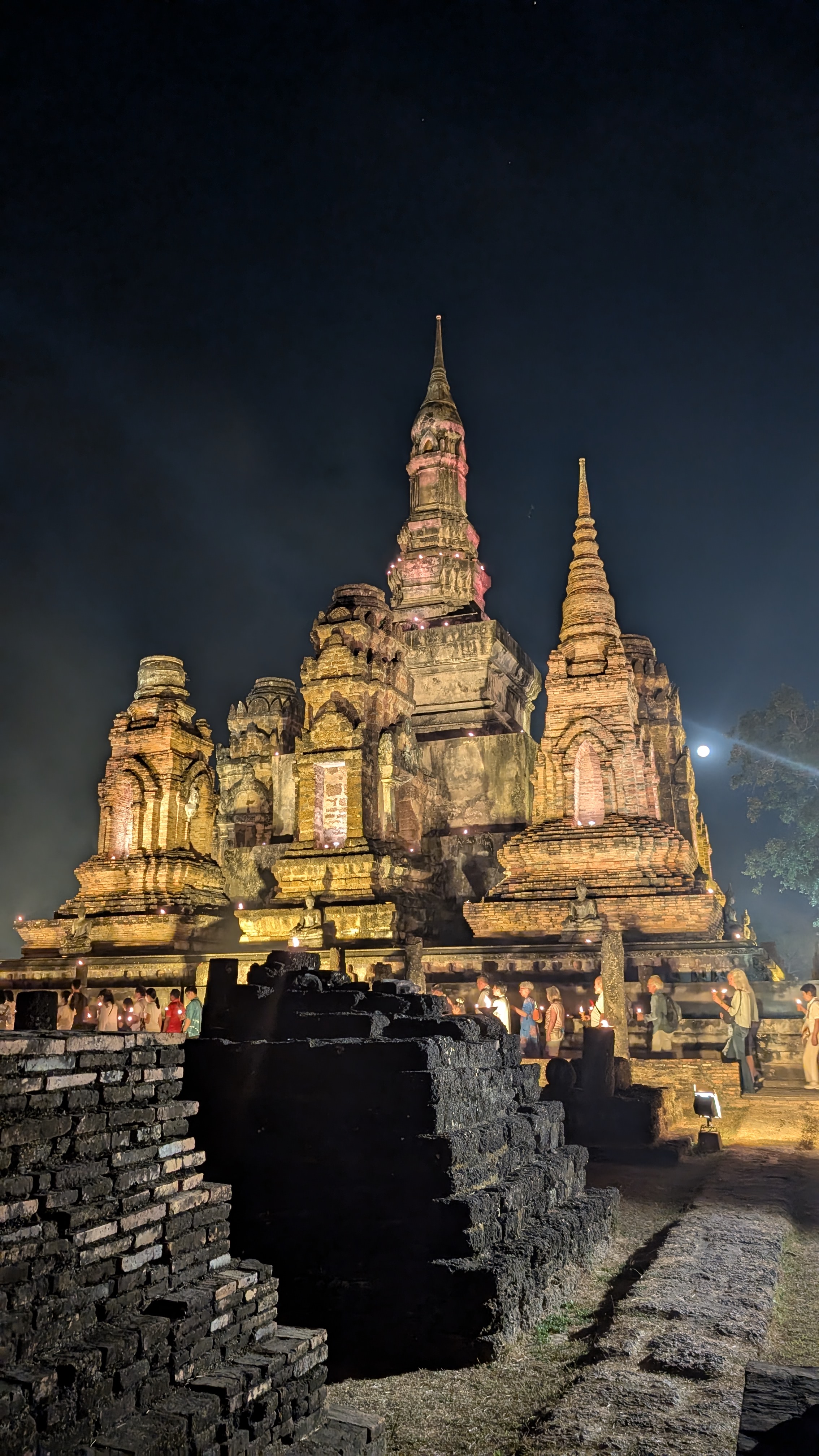 ワット・マハタートの幻想的なライトアップと、サプライズ花火で旅の1日目は感動のクライマックスへ🎆✨